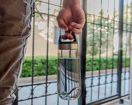 Cilindro de tritán con tapa y asa. CAP. 750 ml. *BPA FREE. Medidas: Ø 7.5 x 25.2 cm