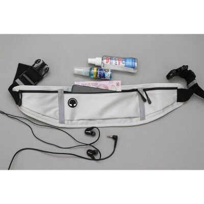 Cinturón deportivo fabricado en poliéster, cuenta con 3 bolsillos con cierre, 2 a los costados y el principal que es lo suficientemente amplio para guardar tu celular, tiras reflejantes y salida para audífonos en la parte frontal, con correa ajustable fácil de abrochar. Medidas: 51.5x11.8 cm.