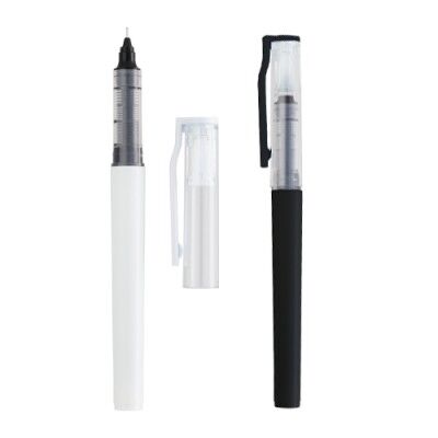Bolígrafo de plástico con tinta negra de gel, tapa traslúcida y clip de plástico. Medidas: 13.2 alto x 1 ancho
