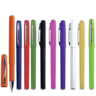 Bolígrafo con acabado rubber, tinta de gel y clip metálico. Medidas: 14.2 alto x 1 ancho