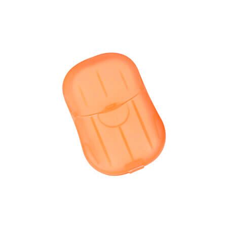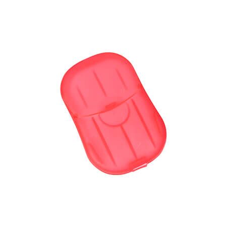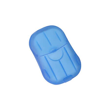 Contenedor portátil fabricado en plástico PP (Polipropileno) translucido, con 20 láminas de jabón de desinfección que es suave para la piel y no causa resequedad. Ideal para llevarlas contigo a cualquier lugar. Medidas: 6.8x4.5 cm.