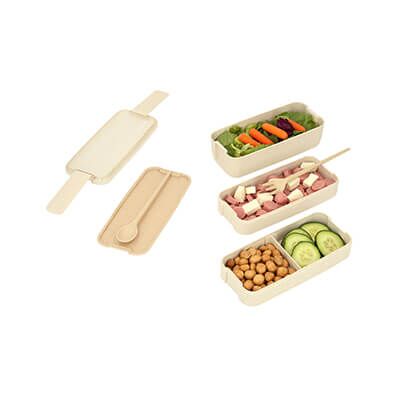 Contenedor para alimento de wheat straw, de 3 niveles, incluye separador de comida, cuchara y tenedor. Capacidad de 900 ml completo. Medidas: 11.2 alto x 17.5 ancho