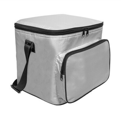 28 x 25 x 25 cm. Capacidad 17,5 litros. Poliéster 420D. Interior recubierto de aluminio. Exterior con bolsillo y cierre que permite guardar pequeños objetos. Tira con regulador de tamaño para poderla transportar cómodamente.