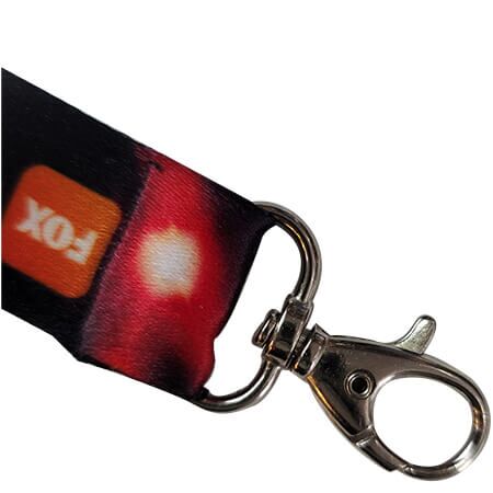 Cinta en 19 mm satinada sublimada una cara con bandola perico y broche desmontable. cordón para gafete personalizado