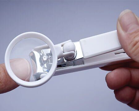 Cortaúñas metálico con cubierta de plástico y lupa integrada. Cuenta con imán para colocar la lupa, la cual se puede ajustar exactamente al ángulo requerido para ampliar la imagen de la uña. Facilita completamente el recorte de uñas. Cuenta también con una lima para que el cuidado personal sea completo. Medidas: 9.2 x 1.9 cm