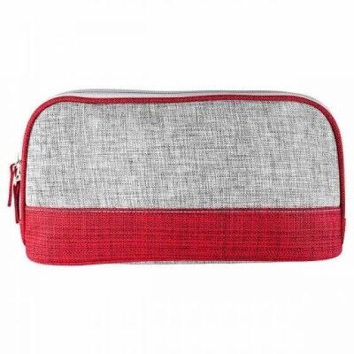 Cosmetiquera de poliéster color gris con franja de color y cierre. Medidas: 28 x 14.5 x 7.5 cm