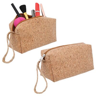 Cosmetiquera de corcho con cierre y asa de yute. Medidas: 12 alto x 21 ancho