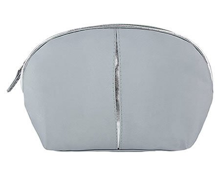 Cosmetiquera de microfibra de color con cierre, bies y línea de adorno en color plata. Medidas: 19.5 x 16.5 x 4.5 cm