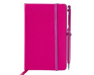 Mini libreta de pasta rígida de color, tamaño A6. Cuenta con banda elástica para cierre y listón separador, 80 hojas beige rayadas (160 páginas). Incluye: bolígrafo metálico en el mismo color de la libreta. El bolígrafo tiene detalles en color plata y cuenta con touch para dispositivos táctiles. Medidas: 9.5 x 14 x 1.2 cm