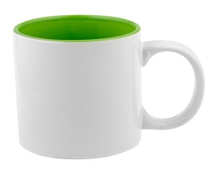 Taza de cerámica blanca con interior de color. Venta caja cerrada de 36 piezas. Medidas: 8 x 9.4 cm