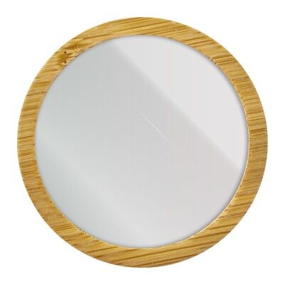 Ø 7,3 cm. Espesor 8mm. Bambú y vidrio. Espejo pocket circular revestido en bambú. Un material noble para acompañarte siempre.