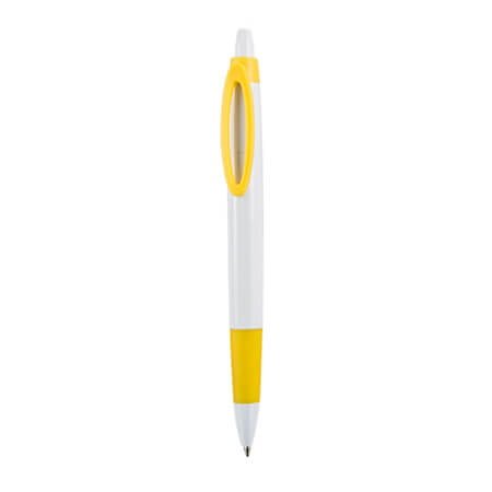 Bolígrafo de plástico con clip de color y grip de goma. Medidas: 14 alto x 1.1 ancho
