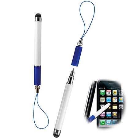 Bolígrafo plástico, tinta negra. Incluye stylus y colguije para celular.