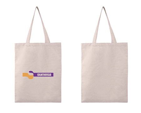 Bolsa 100% de algodón con asa. Peso máximo de carga 10 kgs. Medidas: 35 x 39.5 cm