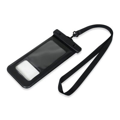 Funda para smartphone con cierre hermético a prueba de agua. Incluye cordón. Compatible con smartphones de 8 x 16 cm máximo. Medidas: 11.6 x 22 cm