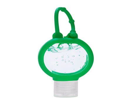 Gel sanitizante portátil y recargable. Incluye sujetador de silicón. Alcohol al 55%. Medidas: 4.8 x 11.9 cm