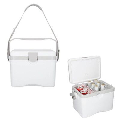 Hielera plástica de doble pared insulada al vacio con separador, broche de seguridad, asa superior y correa ajustable. Medidas: 24.8 alto x 32.5 ancho