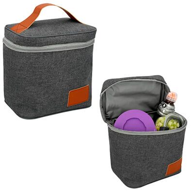 Hielera cuadrada con asa superior de curpiel e interior impermeable plastificado. Medidas: 24 alto x 22.5 ancho