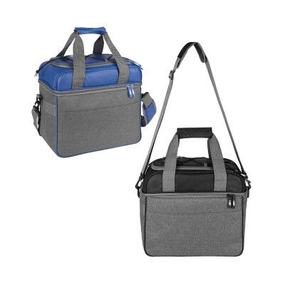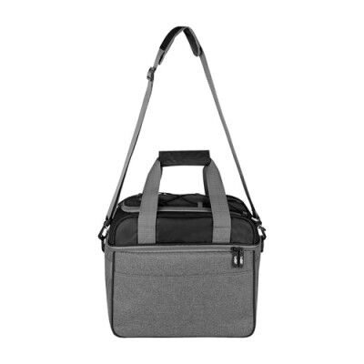 Interior plastificado impermeable. Bolsa principal y bolsa superior con cierre para fácil acceso a interior, bolsa frontal, asas y correa ajustable. Capacidad en parte superior para 4 latas y en parte inferior 10 latas. Medidas: 32.5 x 30 x 19 cm