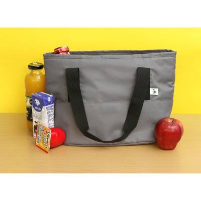 Hielera fabricada en poliéster, con forro de acetato de vinilo y polietileno (PEVA). Con cierre y asa doble. Medidas: 9.5x22x17.5 cm.