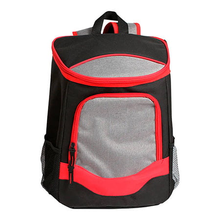 Hielera backpack fabricada en poliéster con bolsas tipo red a los costados. Medidas: 40x32 cm.