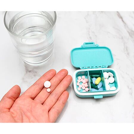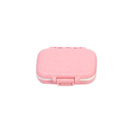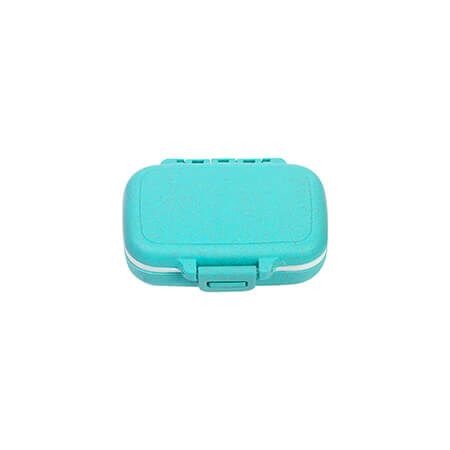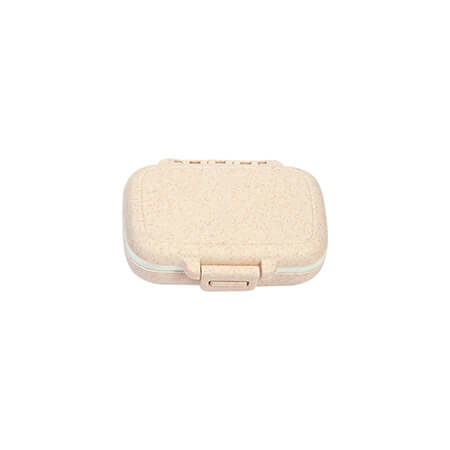 Pastillero fabricado en fibra de trigo, con 3 compartimentos lo suficientemente amplios para almacenar múltiples píldoras/pastillas, empaque de silicón y broche de seguridad en la tapa, gracias a su diseño compacto y que es ligero es fácil y cómodo de transportar. . Medidas: 8x6.5 cm.