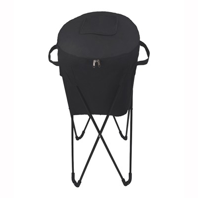 Hielera con base de metal plegable, cubierta cosida e interior termosellado en plástico anti escurrimiento, cuenta con un compartimento de velcro desmontable para guardar, dos cierres, asas laterales y pivote para extracción de líquidos. Incluye funda para guardar. Medidas: 49 x 80 cm