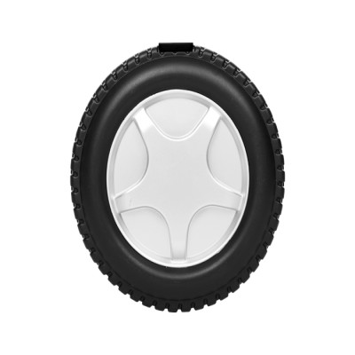 Juego de herramientas en forma de llanta. Incluye: desarmador con adaptador para 10 puntas, 4 dados, cuter y 4 desarmadores de relojero. Presentación: caja en color negro. Medidas: Ø 13.5 x 6 cm