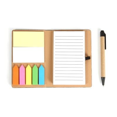 Juego de bloc de notas adhesivo con cubierta de curpiel y bolígrafo. Incluye bloc de notas, notas adhesivas en dos tonos y banderines de coloresEs una excelente elección para mantener tus ideas organizadas y tomar notas de manera creativa. . Medidas: 13x9 cm.