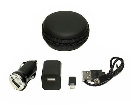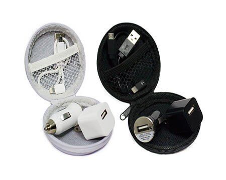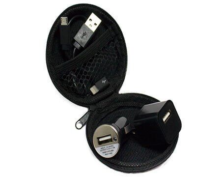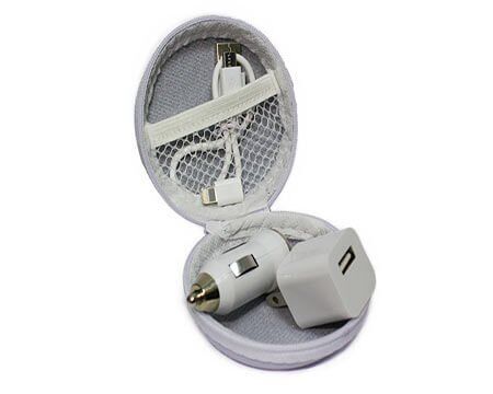 Adaptadores casa/coche. Incluye estuche y entradas para iphone y android.