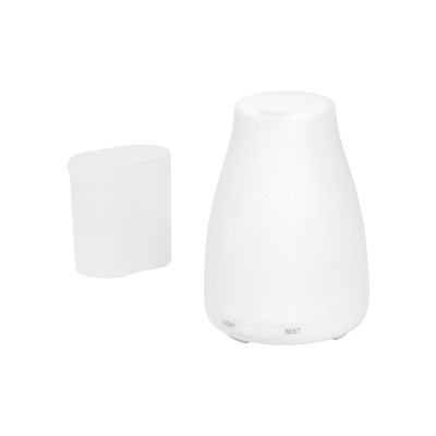 Lámpara led con difusor para aceites esenciales, 7 cambios de luz con brillo ajustable, la lámpara y el difusor pueden utilizarse por separado, carga a través de adaptador de corriente. Incluye caja de cartón individual. Capacidad de 100 ml. Medidas: 14.5x9 cm.