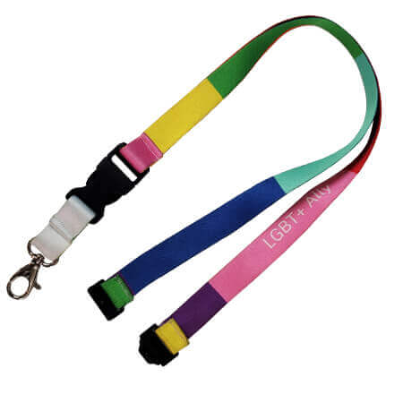Cinta en 19 mm satinada, sublimada una cara con bandola perico, broche desmontable y broche de seguridad al cuello. los mejores lanyards personalizados Mexico