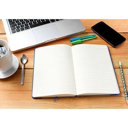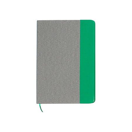 Libreta bi-tono fabricada en PU con listón separador de hojas y 80 hojas de raya. Tamaño A5. Medidas: 21x14.8 cm.