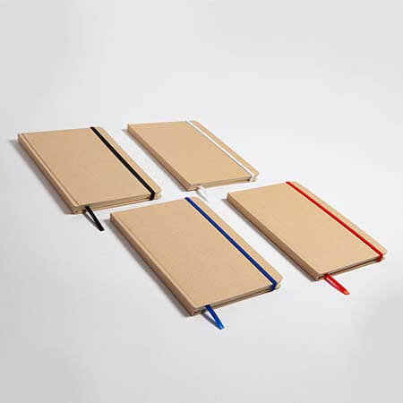 Libreta ecológica con cubierta dura de cartón. Banda elástica y separador; con 80 hojas rayadas.