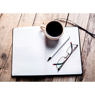 Libreta con pasta de curpiel con alma plata para grabado láser, listón separador de hojas y resorte sujetador de pastas, con 80 hojas de raya. Tamaño A5. Medidas: 21x14.8 cm.