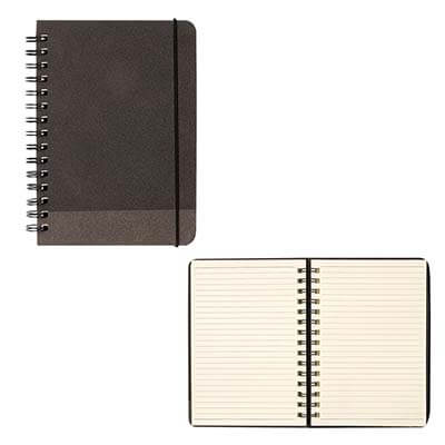 Libreta con 80 hojas de raya. Incluye espiral metálico doble y elástico para cerrar. Medidas: 15 x 21.2 cm
