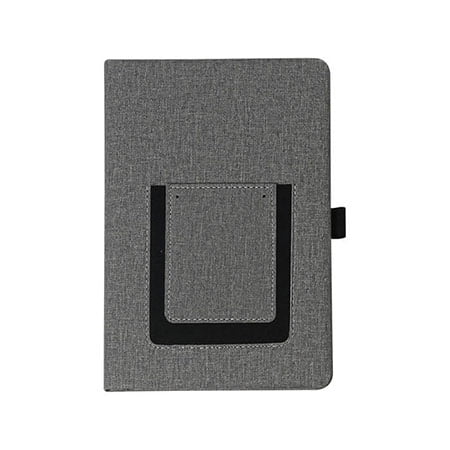 Libreta cubierta en curpiel pasta rígida con 80 hojas y separador, bolsillo porta celular. Tamaño A5. Medidas: 21x14.8 cm.