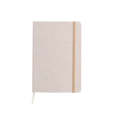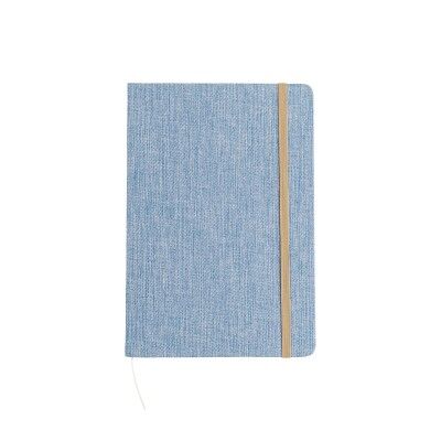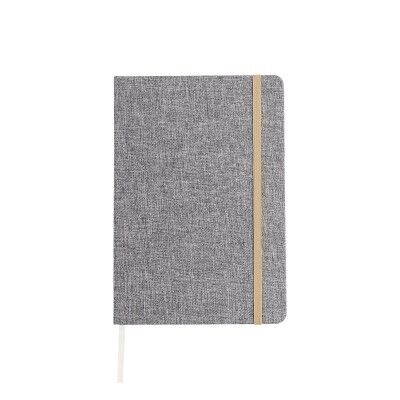Libreta con tapa de algodón reciclado con 80 hojas (rayadas) de 70 g de papel reciclado, con resorte sujetador de pastas y separador de hojas. Esta libreta es una opción eco-amigable y práctica para tomar notas, escribir ideas o llevar un diario. Medidas: 21x14 cm.