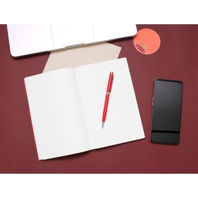 Libreta con cubierta fabricada en papel kraft combinado con cartulina, incluye porta bolígrafo (no incluye bolígrafo). Interior: papel crema de 80 g, 80 hojas rayadas. Páginas finales: papel en blanco color crema de 150 g. Hojas lisas. Medidas: 20.5x13 cm.