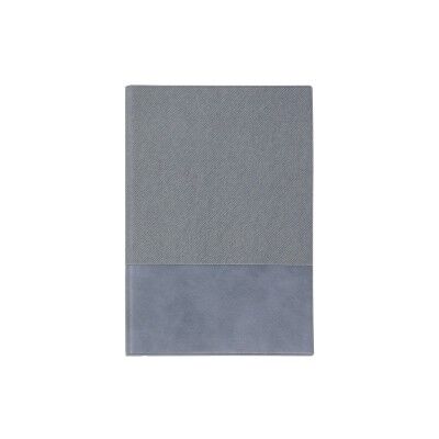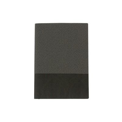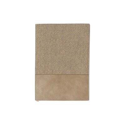 Libreta con cubierta fabricada en PU texturizado. Interior: papel crema de 80 g, 80 hojas rayadas. Páginas finales: marcador de cinta de papel en blanco color crema de 150 g. Medidas: 14.5x21 cm.