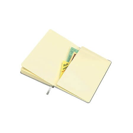 21 x 14 x 1,5 cm Cartón. 80 páginas rayadas. Separador de hojas en tela. Cierre con banda elástica. Sobre portapapeles en el interior de la pasta posterior.