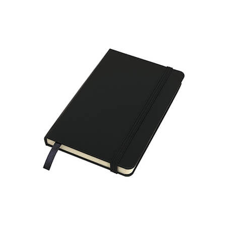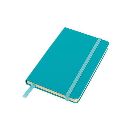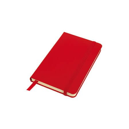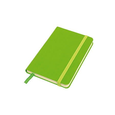 Cartón. 80 hojas rayadas. Separador de hojas en tela. Cierre con banda elástica. 9 x 14 x 1,5 cm.