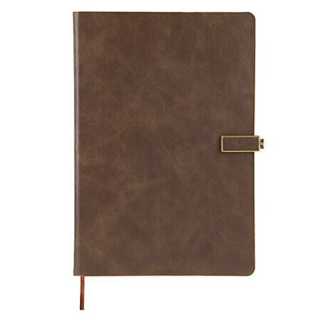 Libreta de curpiel con broche de cierre magnético, separador y 120 hojas rayadas. Medidas: 21 alto x 14.5 ancho