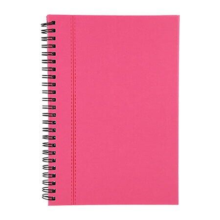 Libreta de poliuretano con espiral metálico y 70 hojas rayadas. Medidas: 21 alto x 14.5 ancho