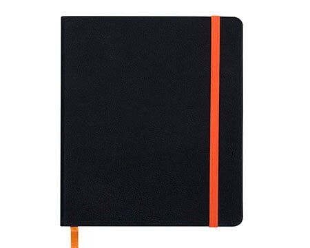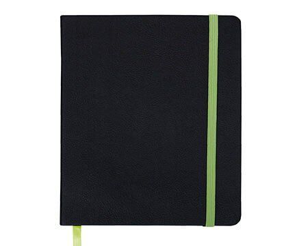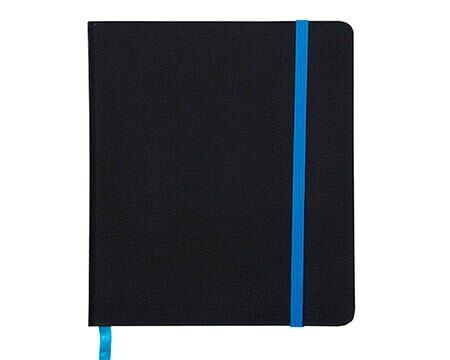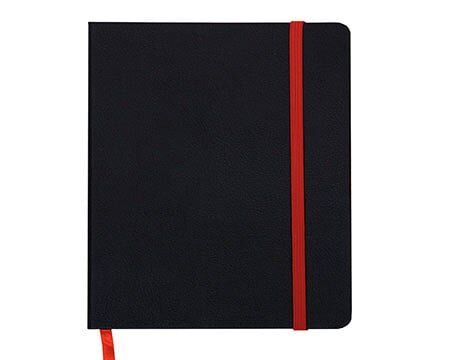 Libreta personal para bitácora tamaño A5 con 80 hojas rayadas (160 páginas). El grabado en láser revela el color a juego con la banda elástica para sujetar. Cuenta con separador de listón. Medidas: 14.3 x 21.2 x 1.4 cm
