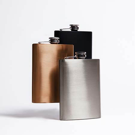 Licorera de acero inoxidable con capacidad de 237 ml (8oz) y tapón de seguridad con rosca.