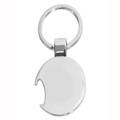 Llavero metálico con esmalte en forma de balón, con arillo reforzado y destapador. Medidas: 7.8 x 3.7 x 0.2 cm