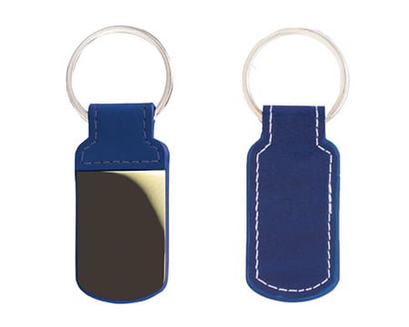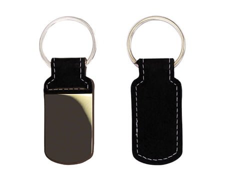 Llavero de curpiel con arillo metálico reforzado. Medidas: 9 x 3.5 x 0.5 cm