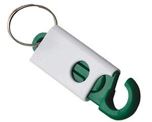 Llavero de plástico con gancho y arillo metálico. Medidas: 7.7 x 2.5 cm