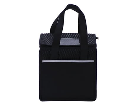Lonchera ecológica con interior térmico cosido, exterior texturizado, compartimento frontal, porta credencial en la parte superior y asas para transportar. Medidas: 20.5 x 22 x 15 cm